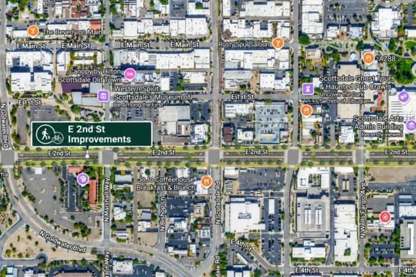 Build Roadway & Pedestrian Improvements along 2nd Street Location: 2nd Street from Drinkwater Blvd to Goldwater Blvd Estimated Completion: June …